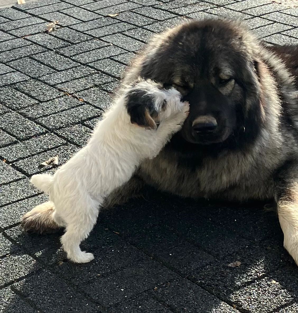 We socialize our puppies with our big dogs so that if you have another pet, they will not be afraid..